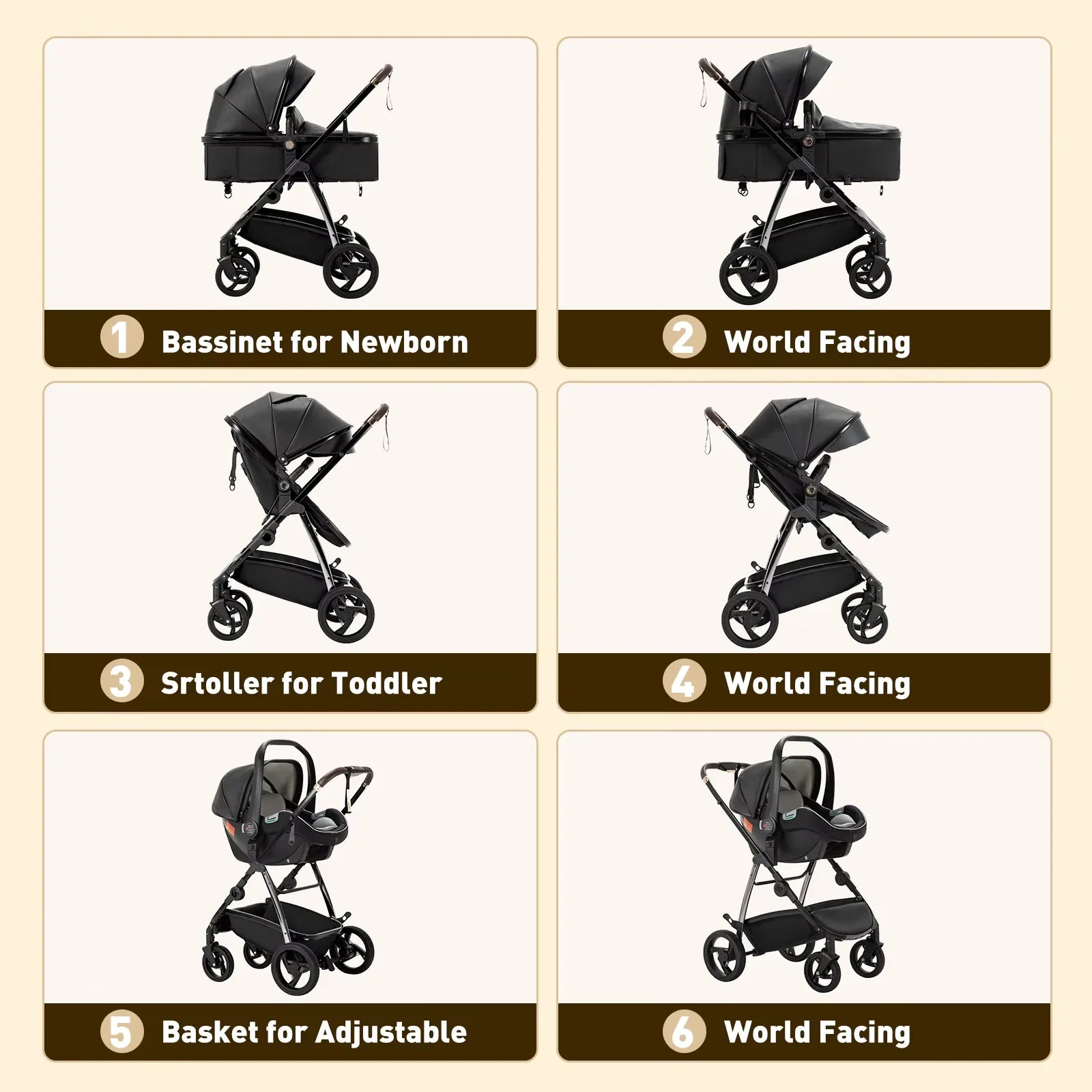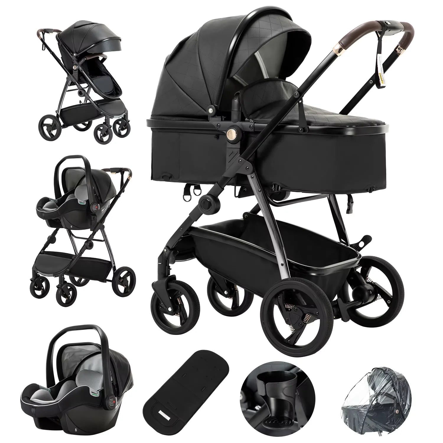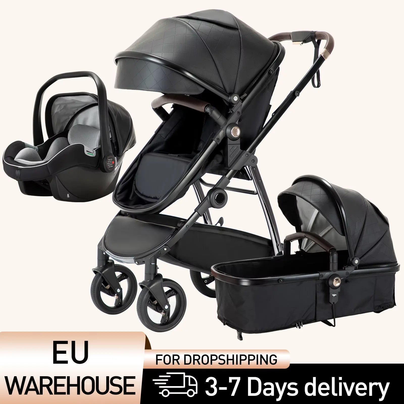 Baby stroller 3 in 1 Baby carriage Portable luxurious travel pram High landscape newborn baby stroller with baby carrier PU